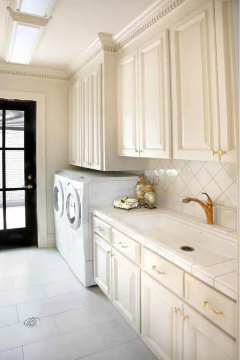 Smart cabinet layouts and storage solutions that optimize space while maintaining a refined look.